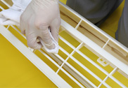 外装パネルを拭き上げます。 | 組み立てて、動作確認して 仕上げます。 |
