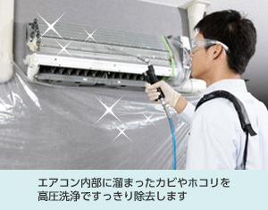 高圧洗浄でエアコン内部にたまったカビやホコリをすっきり取り除くと、