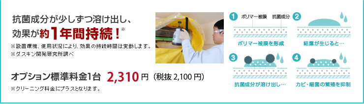 | 抗菌コート 1台<対象箇所:熱交換器・ドレインパン> | 4,620円(税抜4,200円) |