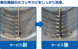 熱交換器を専用の薬剤でクリ ーニング。最後に抗菌・防カビ 処理を施します。 |