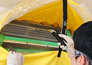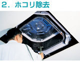 隅々までホコリを除去! エアコンにたまったホコリを、バキュームを使用し除去します。 |