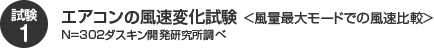| 冷房時のエアコン吹出し口の温度変化 | エアコンの風速変化 エアコン始動後1分間の平均風速 |
